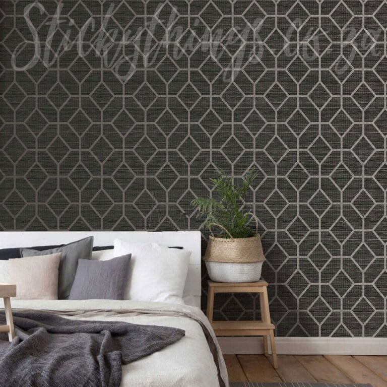 Grasscloth Geometric Charcoal Wallpaper – Trellis Metallic Wallpaper