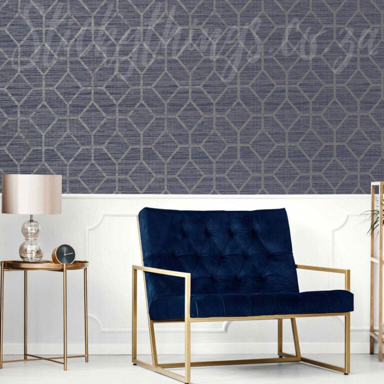Grasscloth Geometric Wallpaper – Metallic Blue Trellis Wallpaper