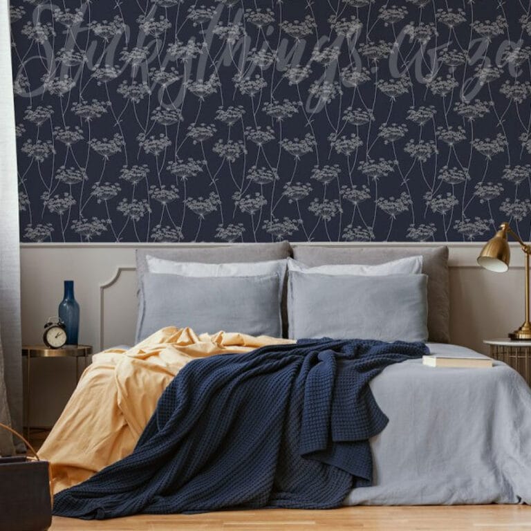 Navy Dandelion Like Wallpaper – Embossed Textured Floral Wallpaper