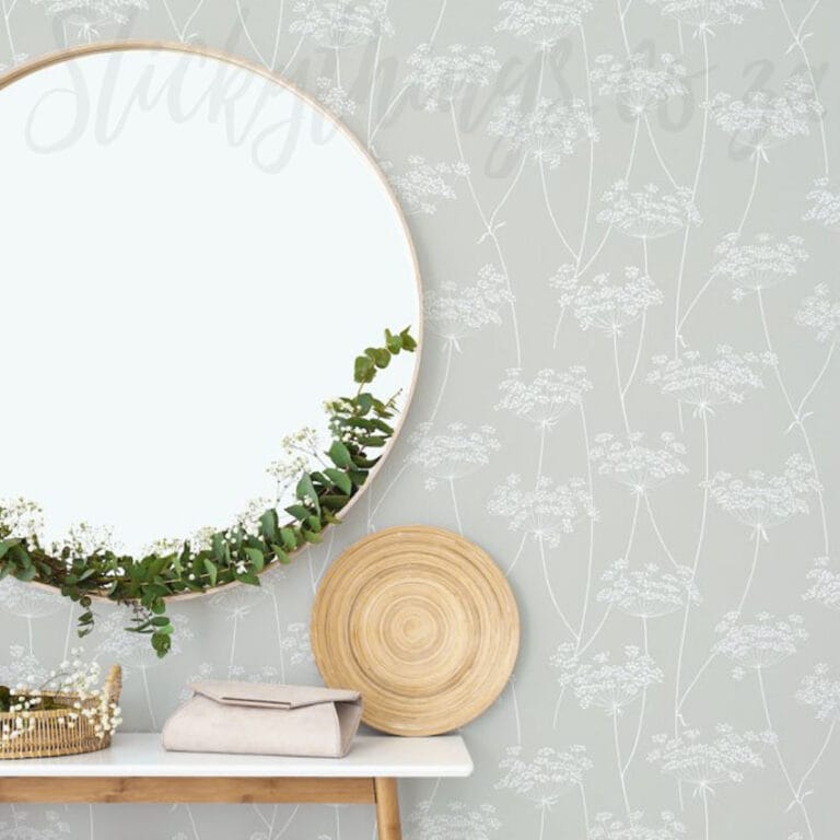 Sage Dandelion Like Wallpaper – Textured Embossed Floral Wallpaper