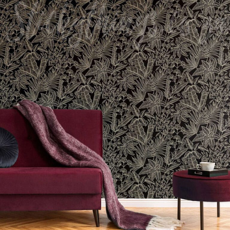 Charcoal Gold Tropical Wallpaper – Matt Metallic Leaves Wallpaper