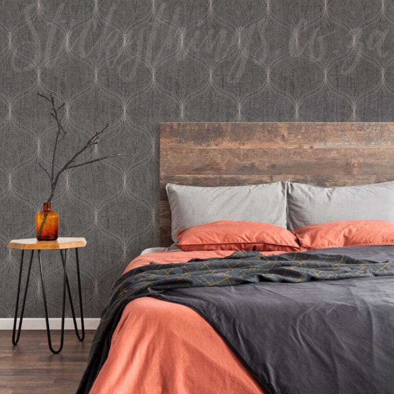 Charcoal Ogee Wallpaper – Embossed Metallic Geometric Wallpaper