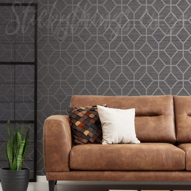 Geometric Grey Grasscloth Wallpaper – Metallic Trellis Wallpaper