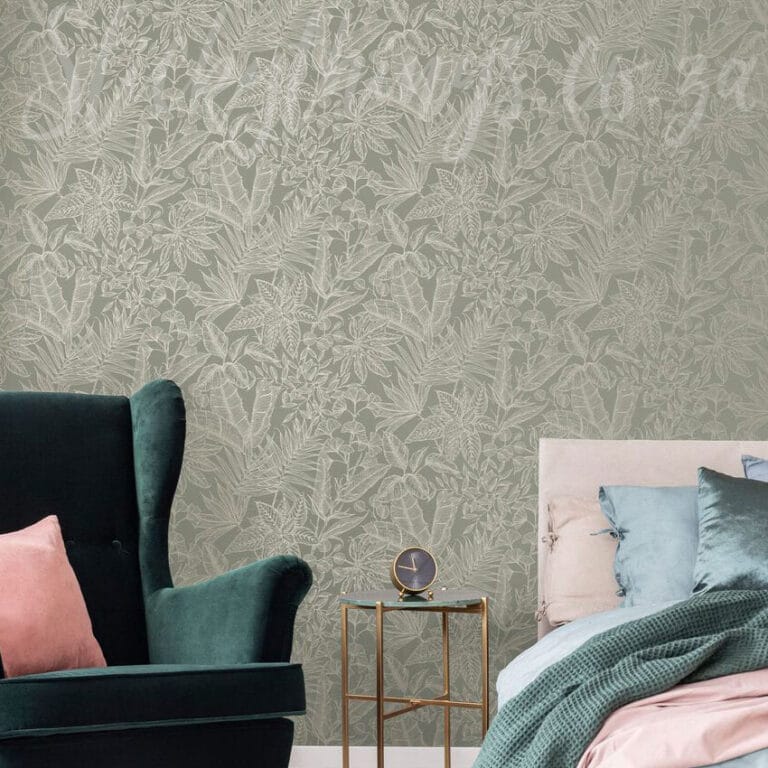 Sage Gold Tropical Wallpaper – Matt Metallic Leaf Wallpaper