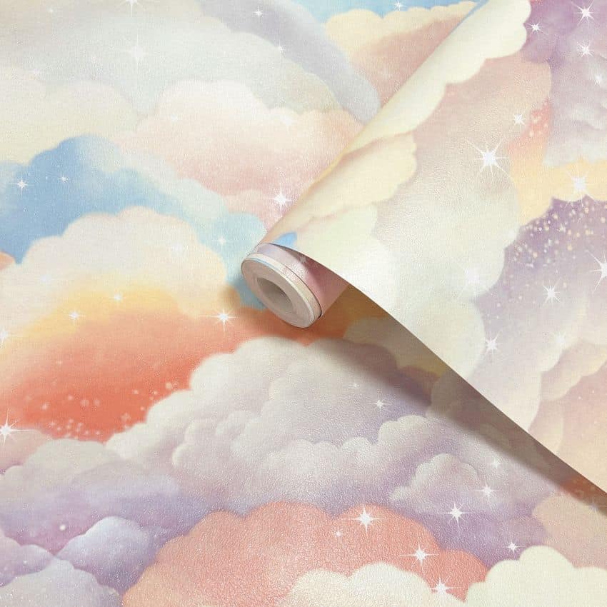 This Dreamy Clouds Wallpaper is guaranteed to bring some calming vibes to any childs bedroom. Choose between soft apricot and teal and lilac clouds or various hues of blue.